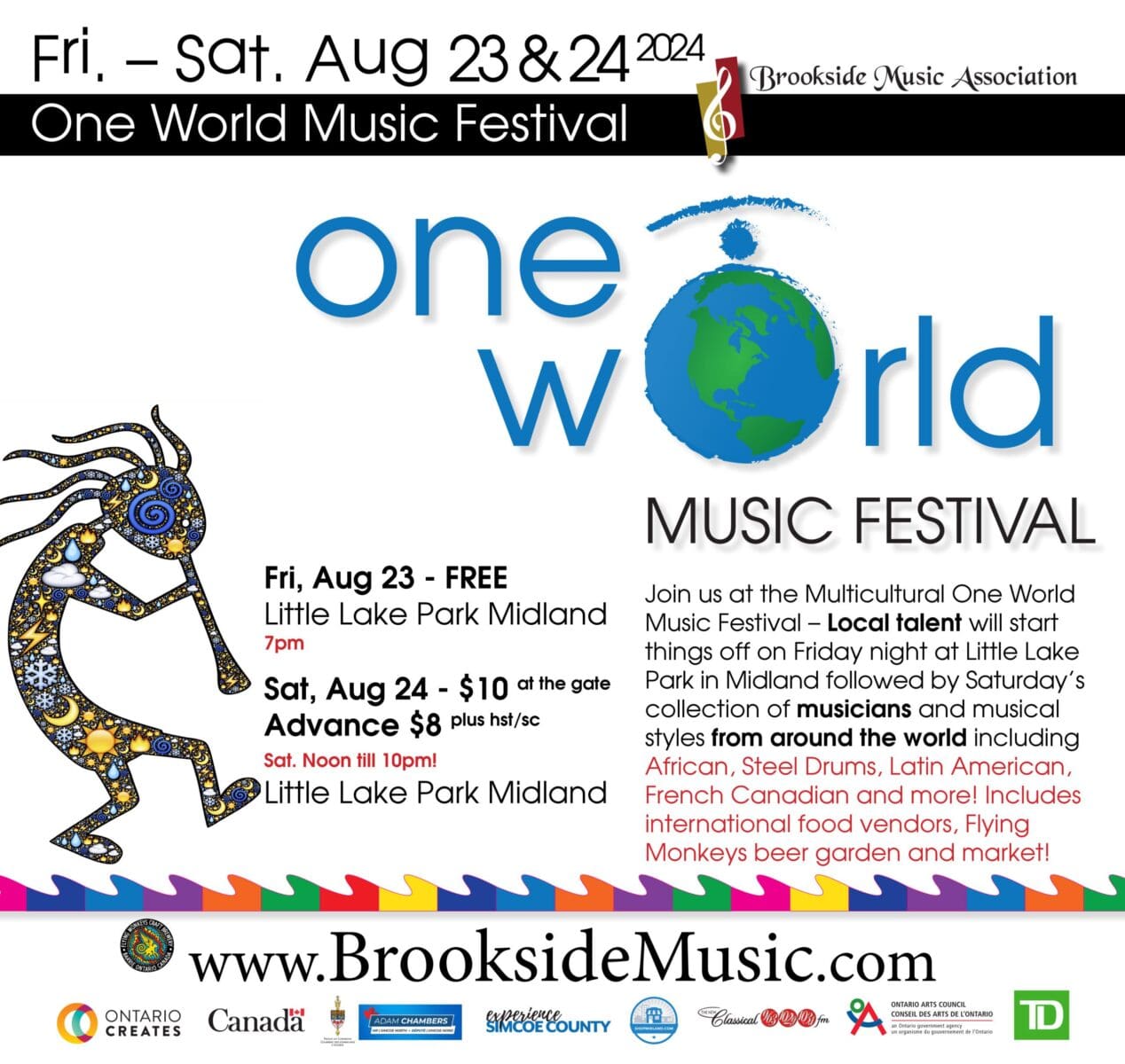 MIDLAND, ON — The One World Music Festival is set to bring a vibrant array of musical performances, artisanal crafts, and diverse culinary experiences to Little Lake Park on August 23rd and 24th, 2024. This two-day festival will be a celebration of global music and culture, promising an unforgettable weekend for all attendees.