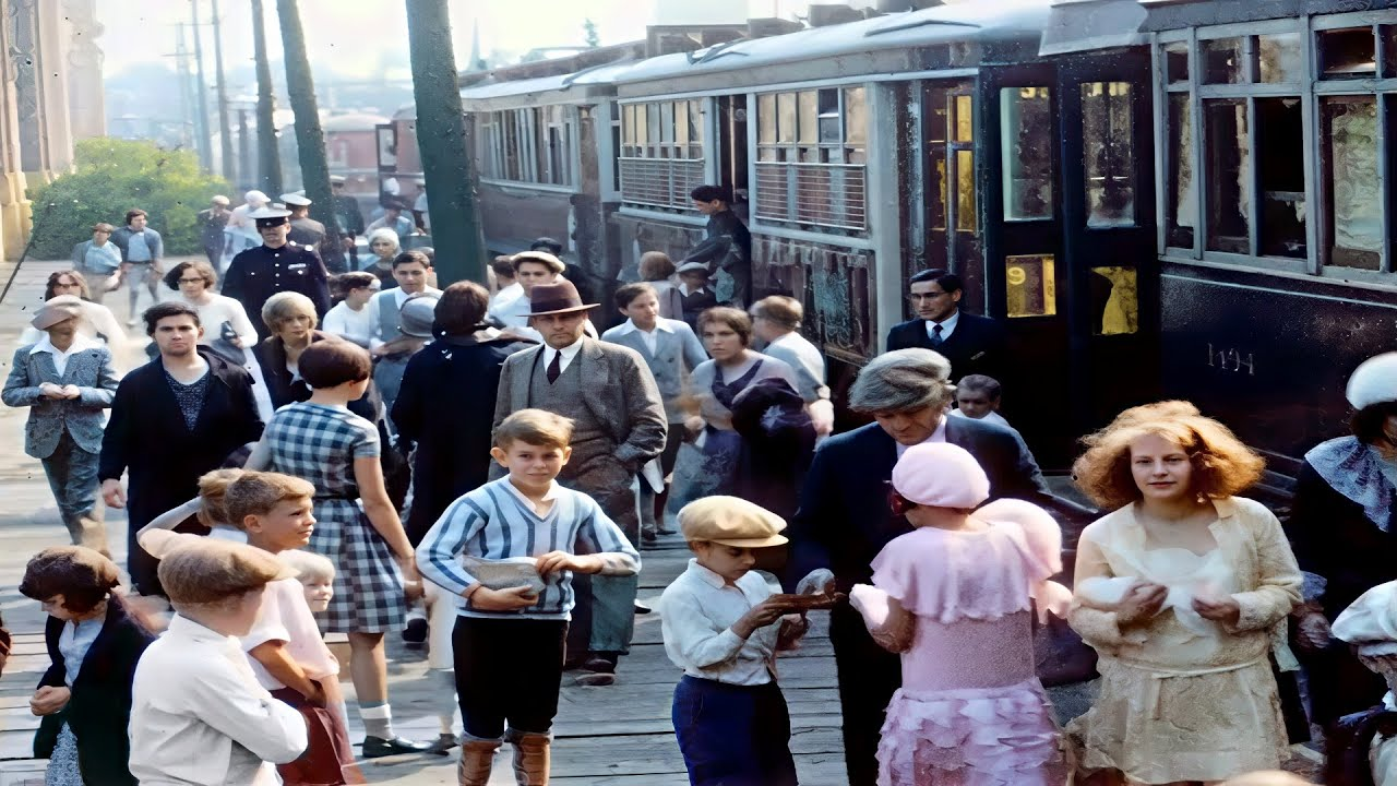 Video Restoration Process: ✔ FPS boosted to 60 frames per second ✔ Image resolution boosted up to HD ✔ Improved video sharpness and brightness ✔ Colorized only for the ambiance (not historically accurate) ✔added sound only for the ambiance ✔restoration:(stabilisation,denoise,cleand,deblur) Please, be aware that colorization colors are not real and fake, colorization was made only for the ambiance and do not represent real historical data.